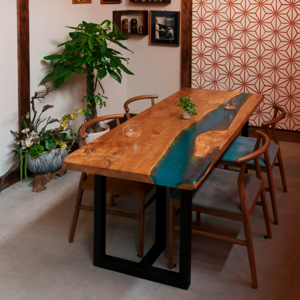 槐(エンジュ)レジンテーブル展示場