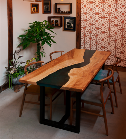 一枚板のもたらす「飾らない贅沢」【名古屋のレジンテーブル 槐】